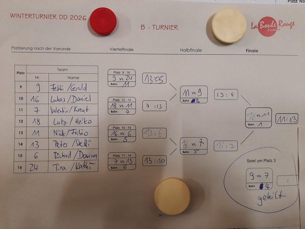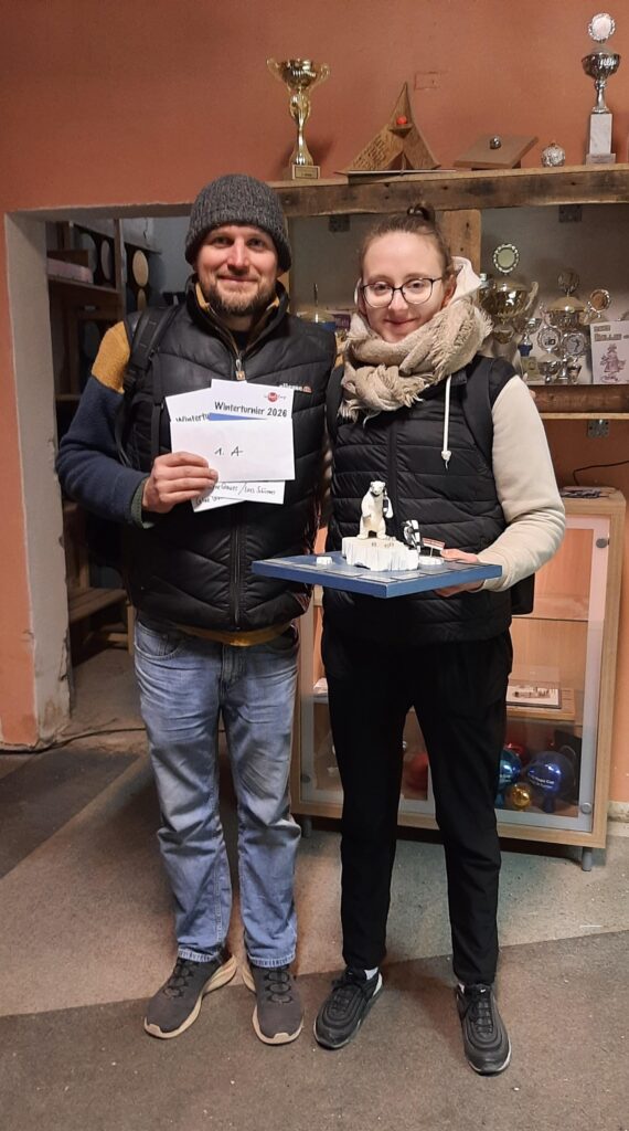 Mit 26 Teams im fast vollen Haus wurde am Samstag das Winterturnier ausgetragen. Orga, Turnierleitung, Einkauf, Versorgung und Bar lagen dabei diesmal komplett in Frauenhand – dafür gleichmal an dieser Stelle ein großes Dankeschön an Sabine, Kristin, Theresia, Annette, Tina, Gabi und Anja. Und an Tom für die Suppe 😉