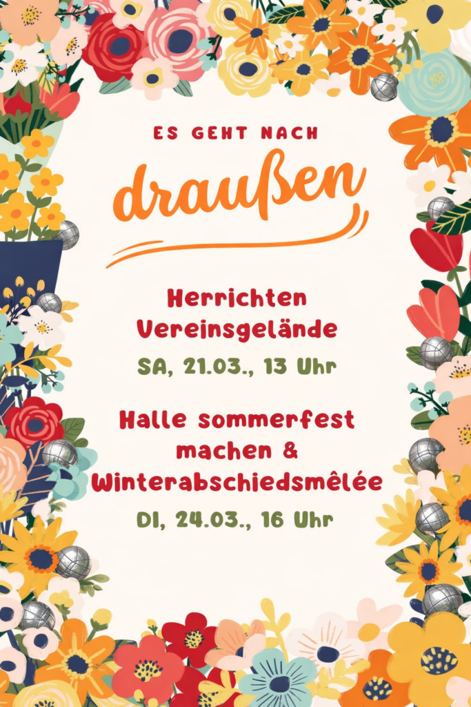 Liebe Leute, wie bereits im Protokoll des letzten Vorstandssitzung erklärt, haben wir in diesem Jahr unseren Umzug aufs Vereinsgelände ein Woche vorverlegt. Damit nach dem Platzputz und Zeltaufbau auch noch Zeit für das ein oder andere Spielchen bleibt, wollen wir die Halle erst am darauffolgenden Dienstag aufräumen. Danach gibt es als Dankeschön für alle Helfer ein kleines Winterabschiedsmelee, Freigetränke inklusive 😉